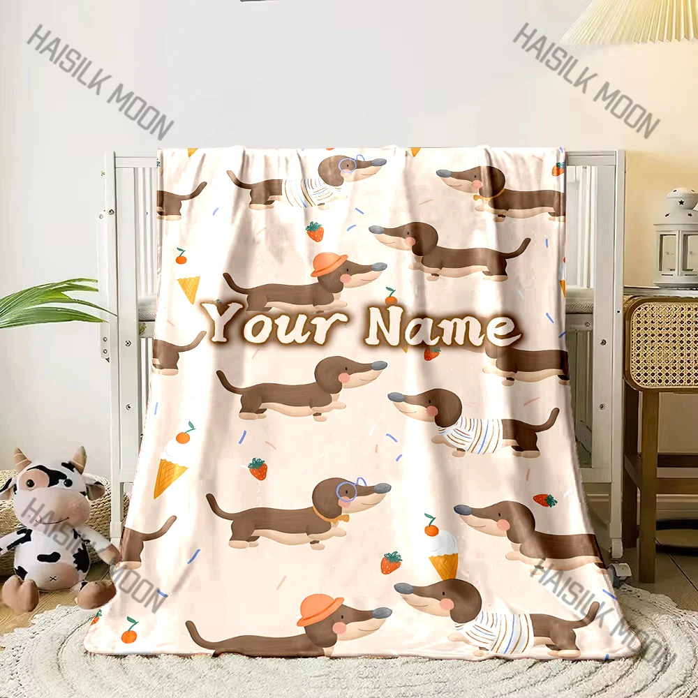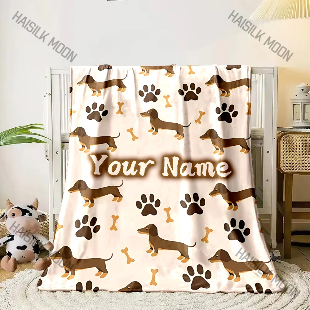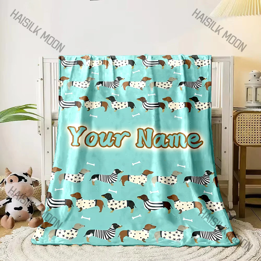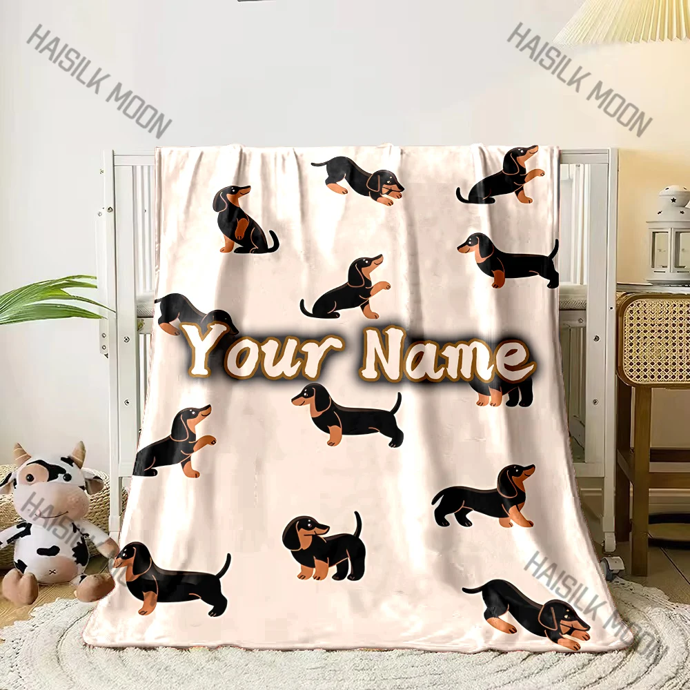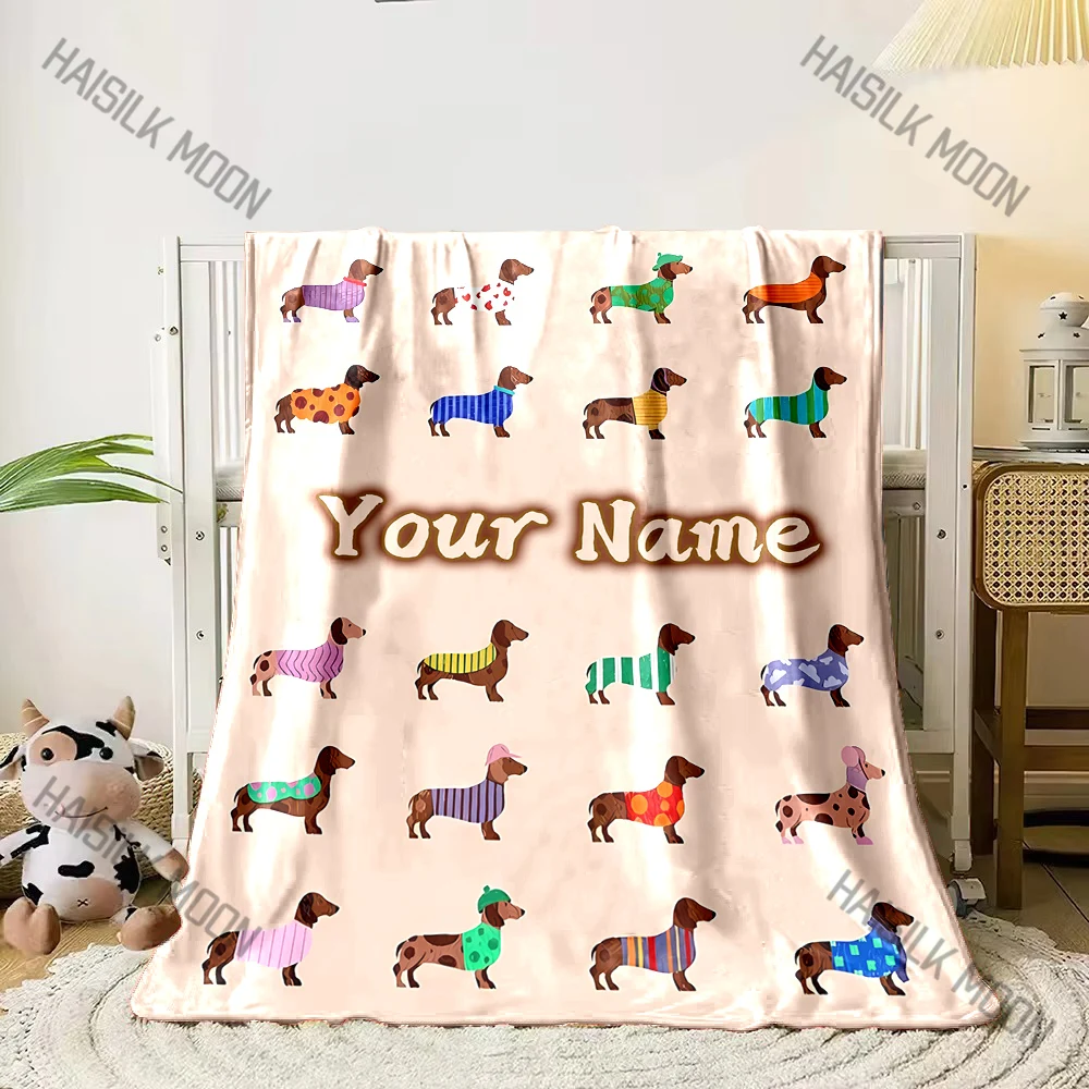 Customized Name Personalized Blanket Dachshund Printed Blanket Soft and Comfortable Home Travel Adult and Warm Blanket