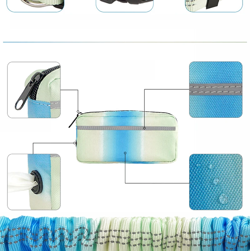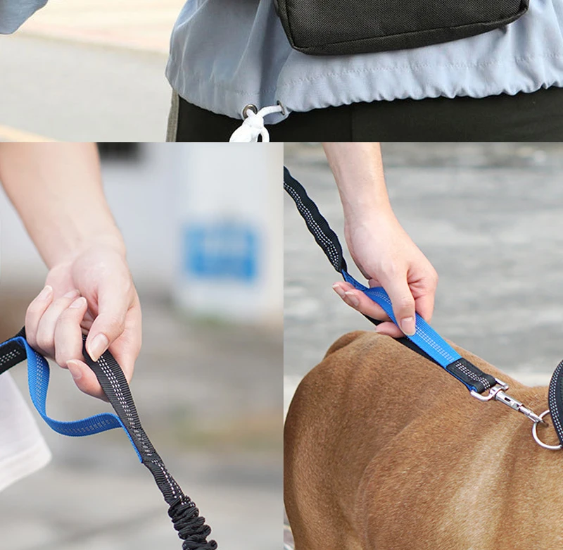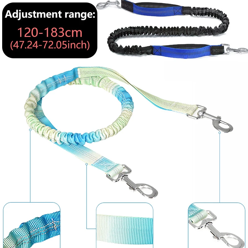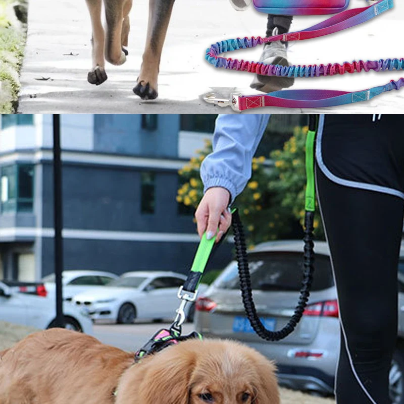 2); Shock Absorbing Bungee Leash: As the leash is pulled, the elasticity becomes higher, this is a "stop pulling" warning, and your dog will gradually be trained. The shock-absorbing bungee leash can reduce the stress and muscle strain on you and the dog and avoid your waist injury.