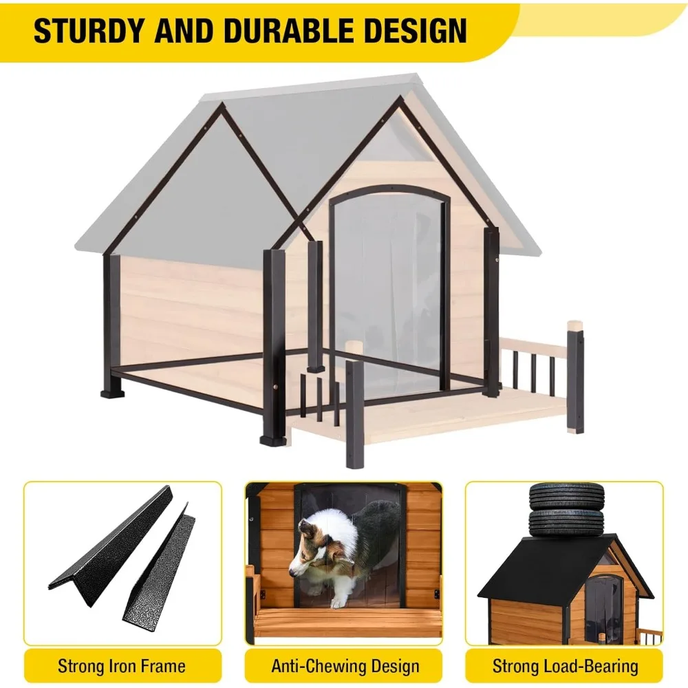 Outdoor Dog House with All-Around Insulated Liner Weatherproof Puppy Shelter Indoor Dog Kennel, Anti-Bite Dog Home for Large Bre