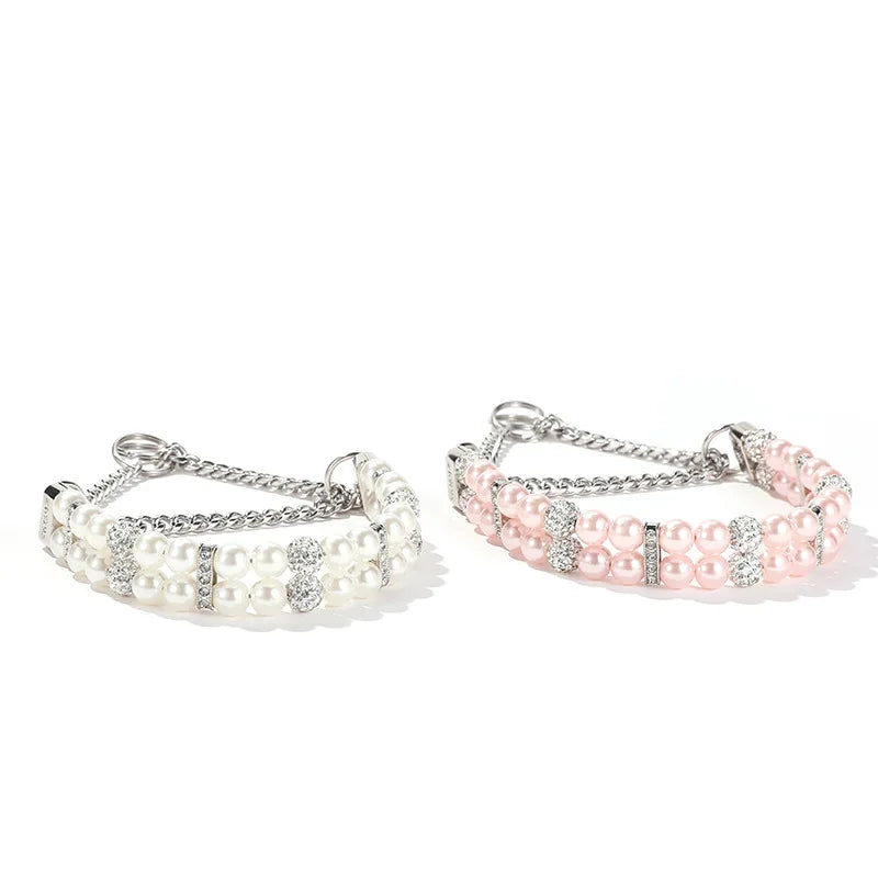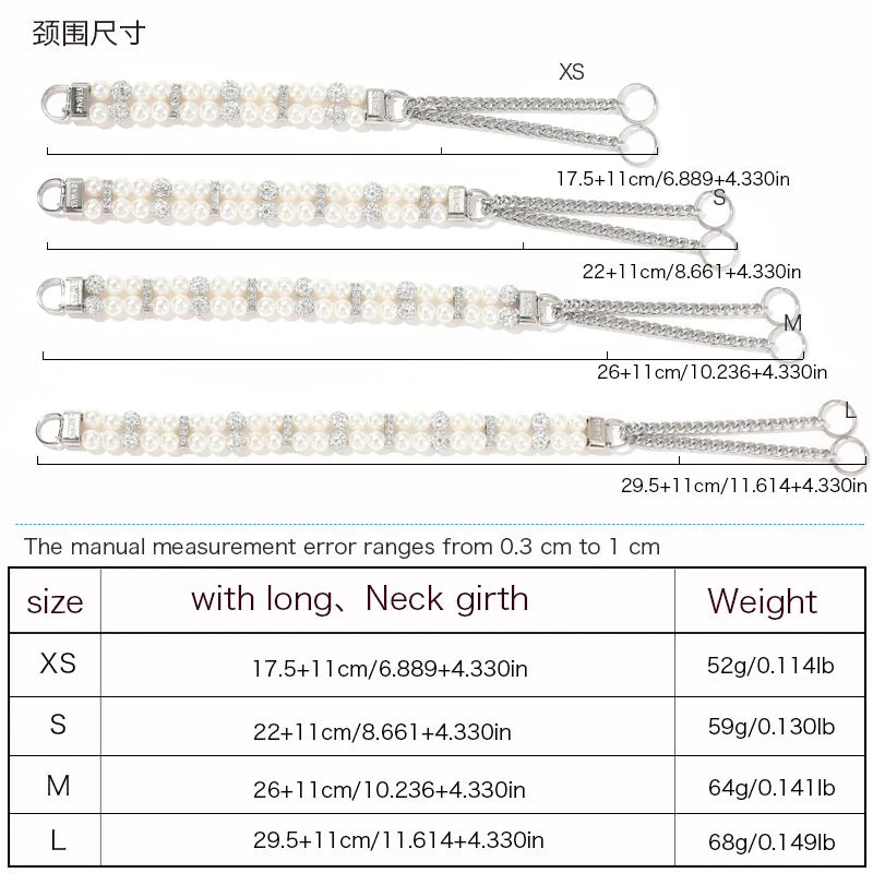 White Pearl Pet Collar with Leash Set Elegant Dog Cat Necklace Harness, Adjustable Puppy Kitten Choker Chain Pet Accessories
